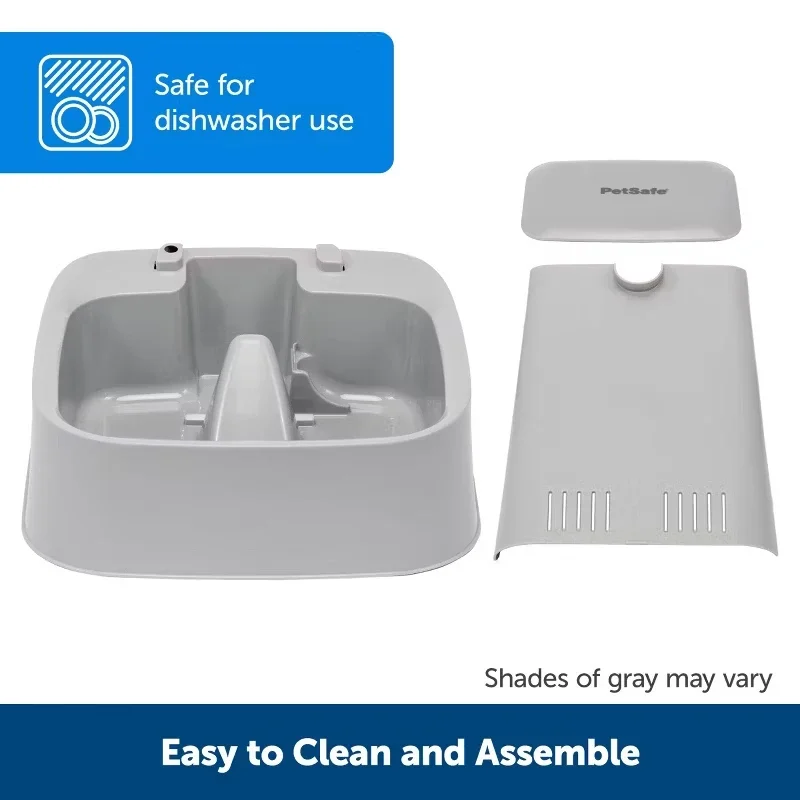 【Easy to Clean】 The pet fountain is top-rack dishwasher safe (excluding the pump) and specifically designed with no hard to reach places