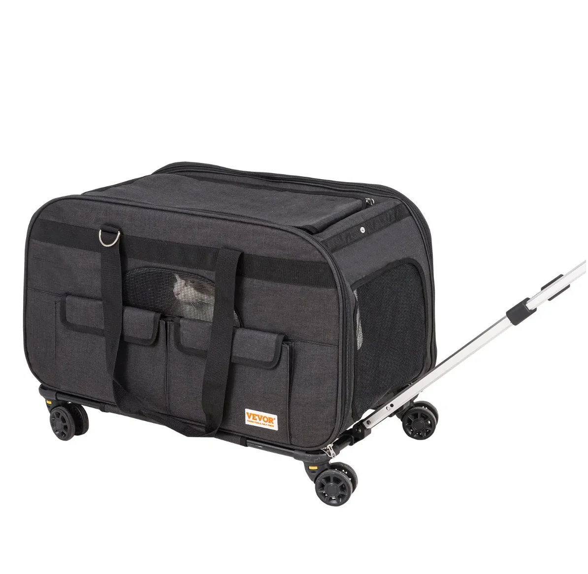 VEVOR Cat Carrier with Wheels Rolling Pet Carrier Telescopic Handle Shoulder Strap for Pets 35 lbs 1 Folding Bowl Black